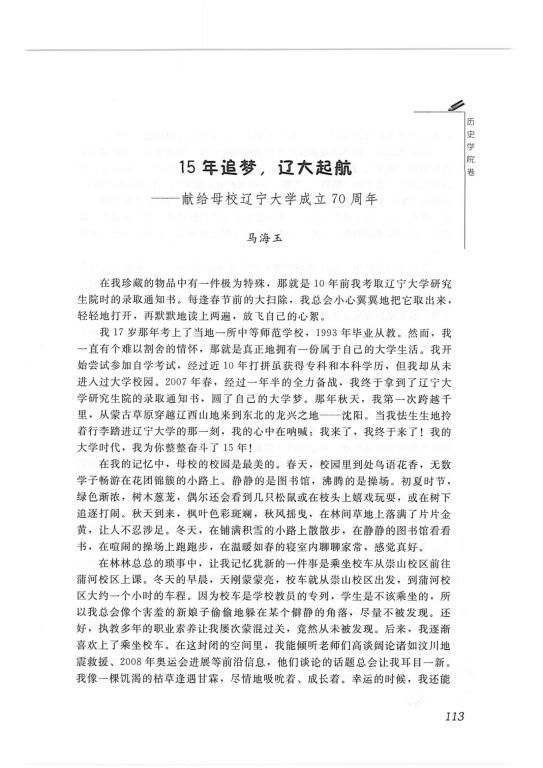 马海玉(06级硕士)-《15年追梦,辽大起航—献给母校辽宁大学成立70周年》